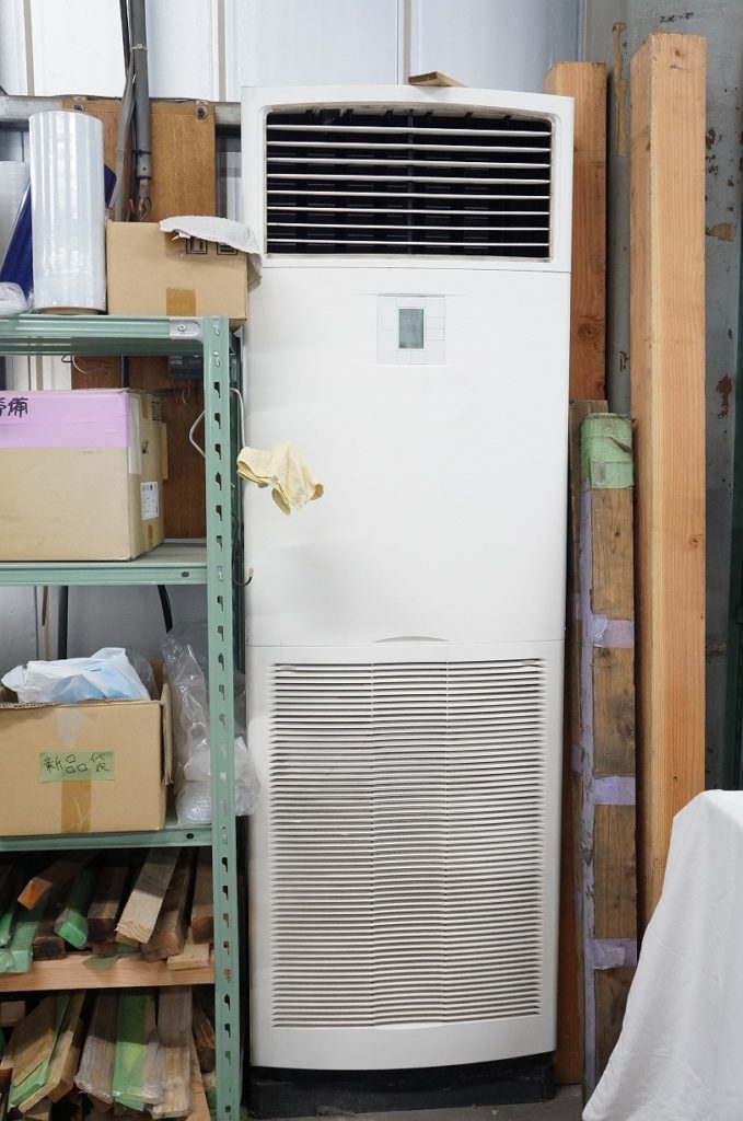 また、配管が届かないところには置き型タイプのエアコンを設置しています。とてもパワフルなエアコンで、目の前に立つと寒く感じるほどです。