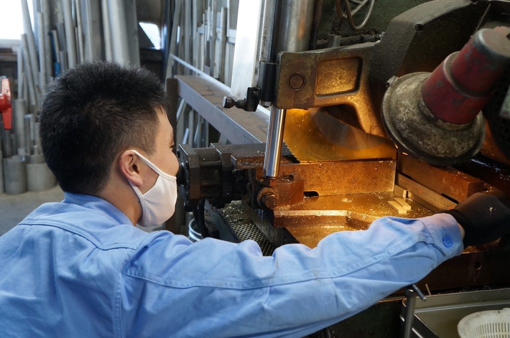 イシバシではスクリューフィーダーをはじめとするステンレス製品の加工から組み立てまで、本社工場内で一貫してお受けしています。それぞれの作業工程のプロフェッショナルが、互いに協力しながらも各自仕事に没頭できる環境があります。