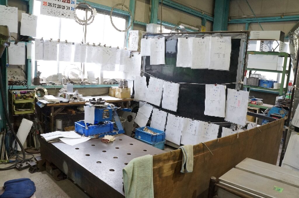 工場の一角にこのようなデスクワークができるスペースがあります。ここでは溶接や組み立てといった作業ではなく、ステンレスの発注をかける事務的な作業をメインに行っています。