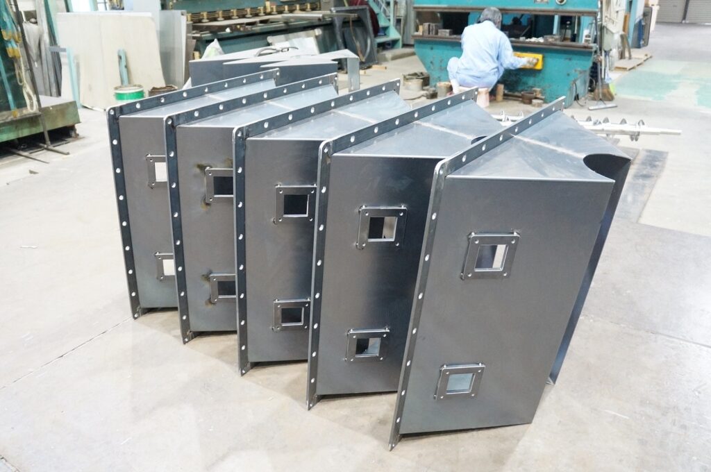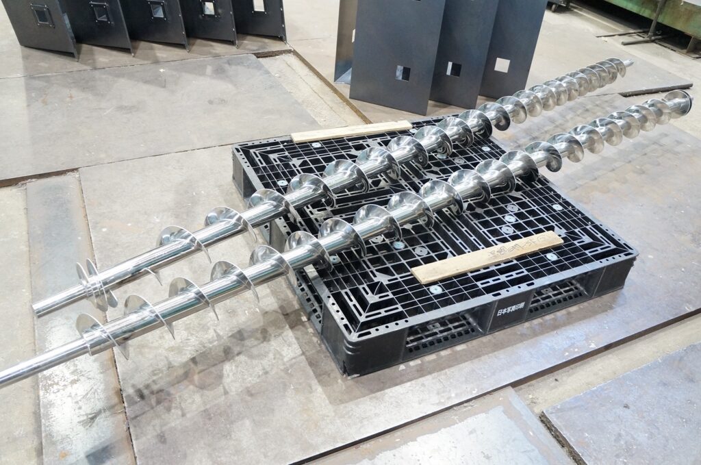 先月ご紹介した鉄製のスクリューフィーダーです。全部で8台納品の大型案件なので、溶接チームはもっぱら鋼材(鉄)の加工・溶接をしています。
