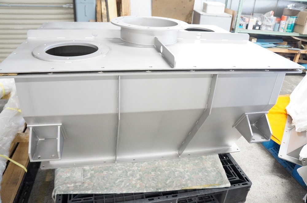 こちらは溶接を終えたばかりのホッパーです。大手製麺会社に納品予定のもので、4月の納品を目指して製作中です。