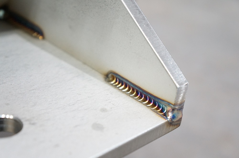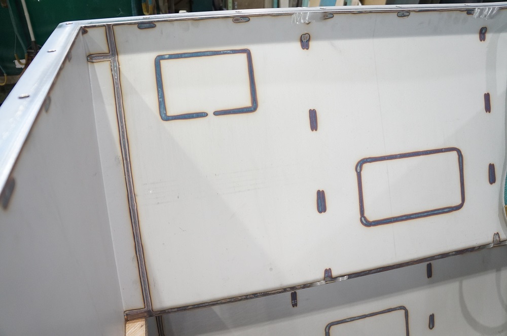 茶色く変色している箇所は汚れや錆ではなく、溶接加工した跡が残った「溶接焼け」です。もちろんこれで完成ではありません。この後、ステンレスの表面を磨く「表面加工」と、溶接した部分を目立たなくする「焼き落とし」をします。