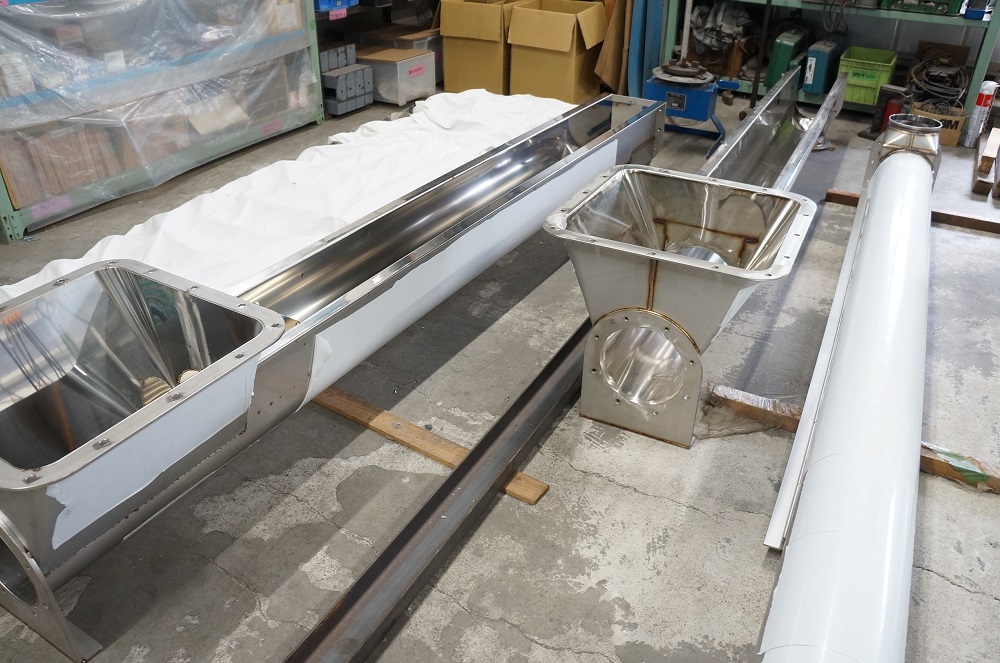 こちらは大手製菓メーカーに納品予定のスクリューケースです。イシバシで普段受注している製品と比較してもかなり大きめサイズ。