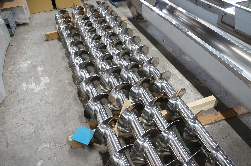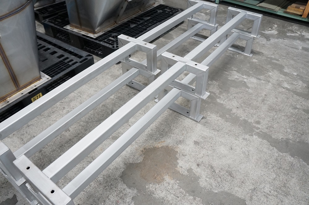 大きいスクリューフィーダーを支えるステンレス架台です。ステンレス架台とスクリューケース、スクリューフィーダーをそれぞれ4台ずつ納品します。
