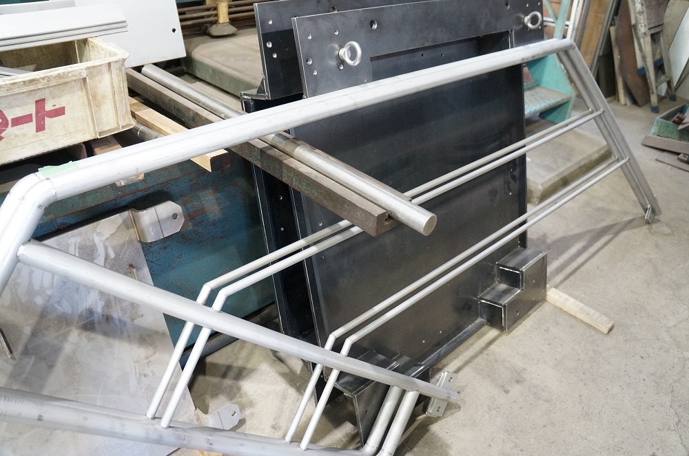 これは手摺だけの画像ですが、ほかにもパーツも取り外しできるようになっています。納品先に到着後、専門の作業員が組立作業をおこないます。
