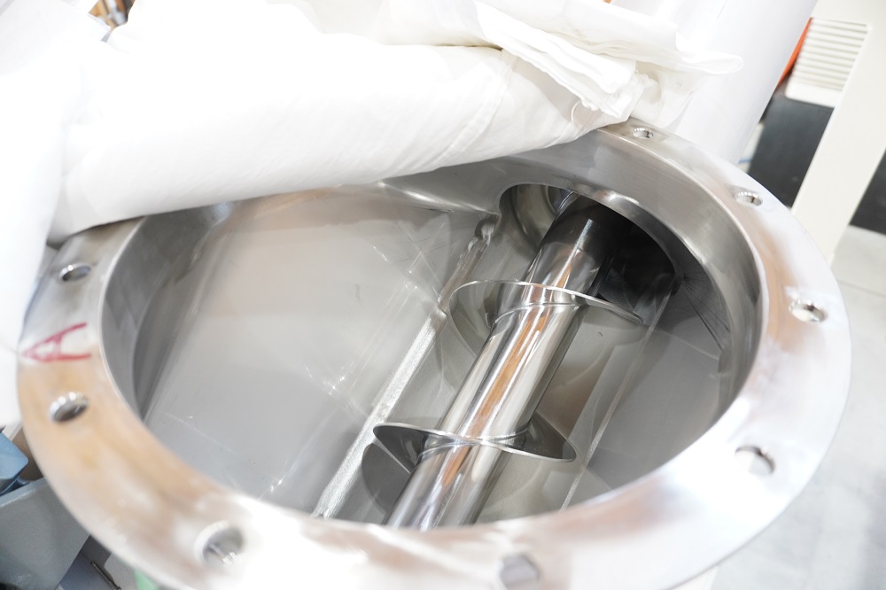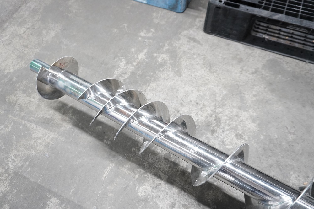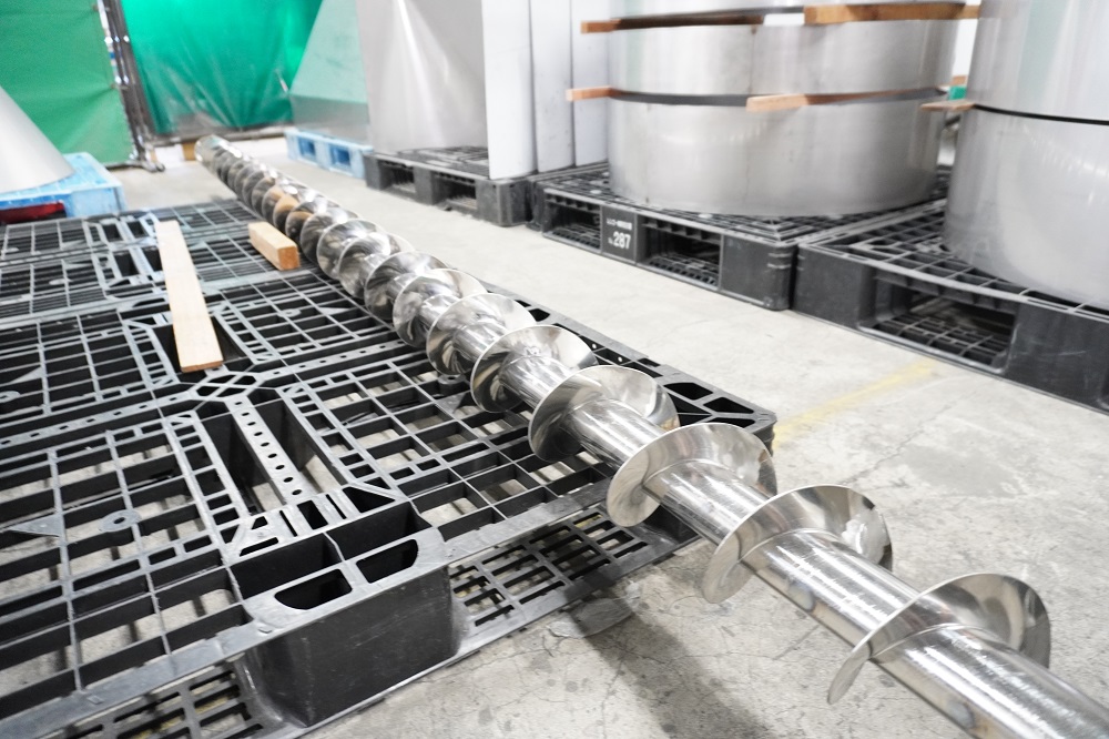 端の方は粉体を効率よく粉砕するために羽根のピッチが狭くなっています。輸送する粉粒体の性質に応じて、ピッチの幅を変えて製作できます。