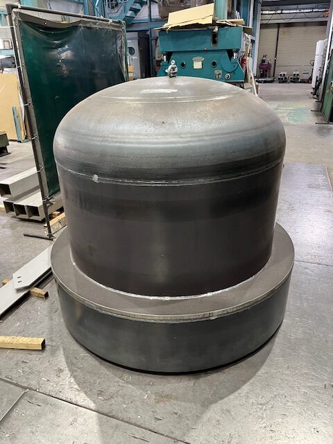 一方、こちらは鉄製で板厚が25mmと非常に厚みのあるタンクです。厚みのあるタンクは、強い圧力や熱に耐えられるのが特長。見るからに重厚感がありますね。イシバシではステンレス製の製品を多く製造していますが、今回のように鉄製品を受注することもあります。