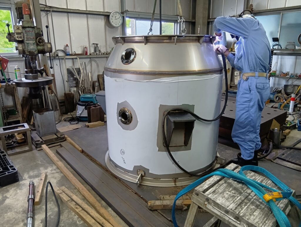 先月から製作を続けているタンクですが、現在も順調に作業が進んでいます。サイズ違いのタンクを複数受注している大型案件です。