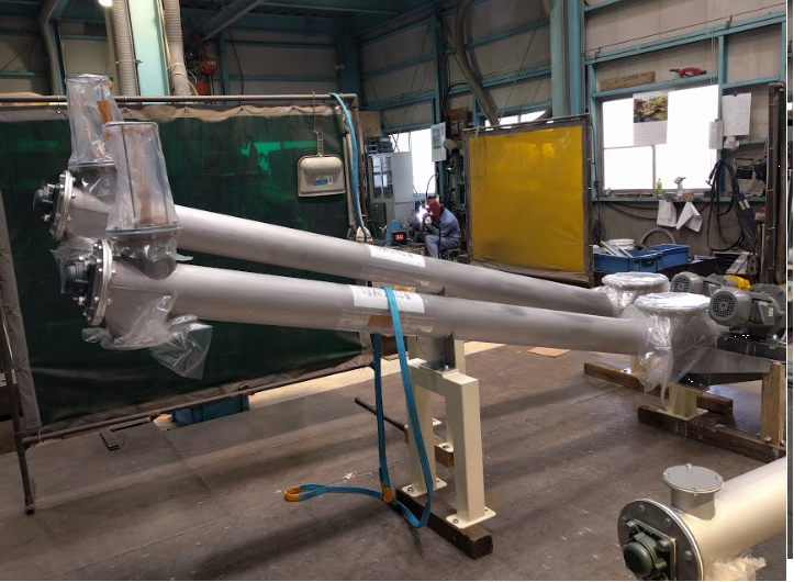 写真のスクリューフィーダーは弊社製作品の中でも大きなものとなります。