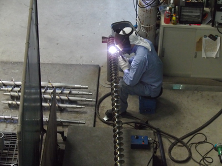 こちらの写真は弊社工場でのステンレス製品の溶接風景です。