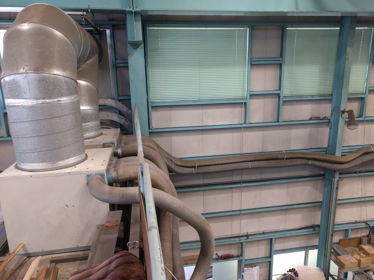 このようなホースが次の写真にあります空調設備からいくつも伸びており、それぞれの作業場に冷気を送っています。