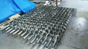 オーダーメイドといっても、こちらのスクリューフィーダーのように10本単位で製作することが多いです。経験者の方にはどんどん様々な溶接を覚えていただいています。大量生産の部品を製作するところと違い、10本単位で製作したら次は違う形状の製品を製作しますので、各人の技術力は常に向上し続けます。
