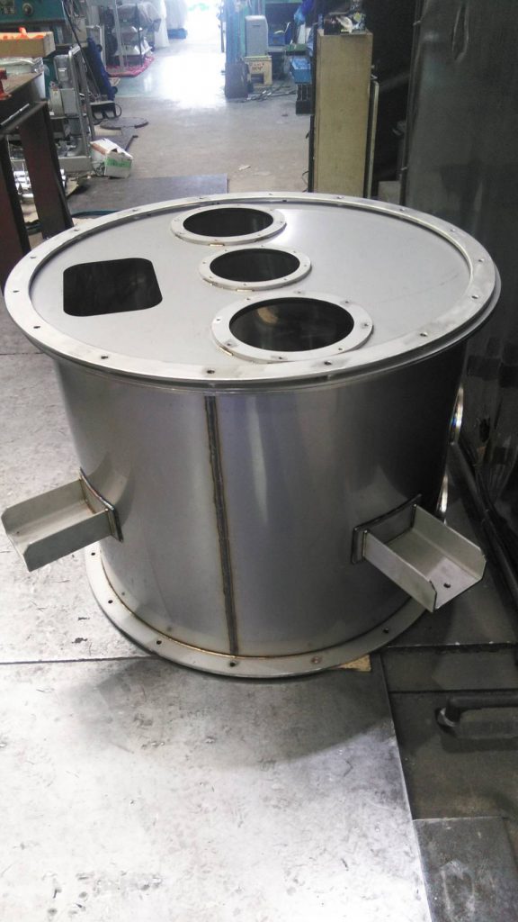 こちらのステンレス製ホッパーのように、単純な容器としてではない構造のものなどオーダーメイドで製作していますので、溶接工は日々技術の向上が見込めます。若手も徐々にできる範囲が広がりますので、自分の腕が上がっているということが実感できるのでやりがいを感じることができます。