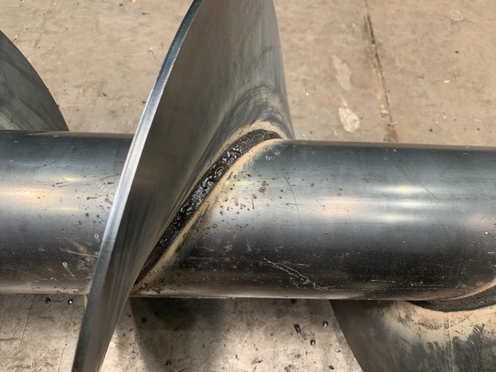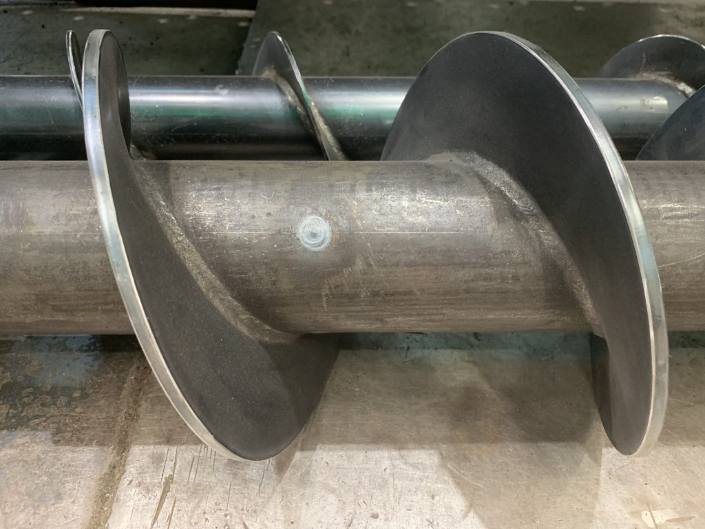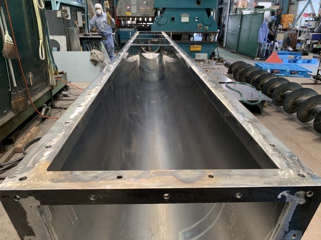 今回のスクリューフィーダーの本体となるトラフ部分には半自動溶接を、スクリュー部分にはアーク溶接を施しました。