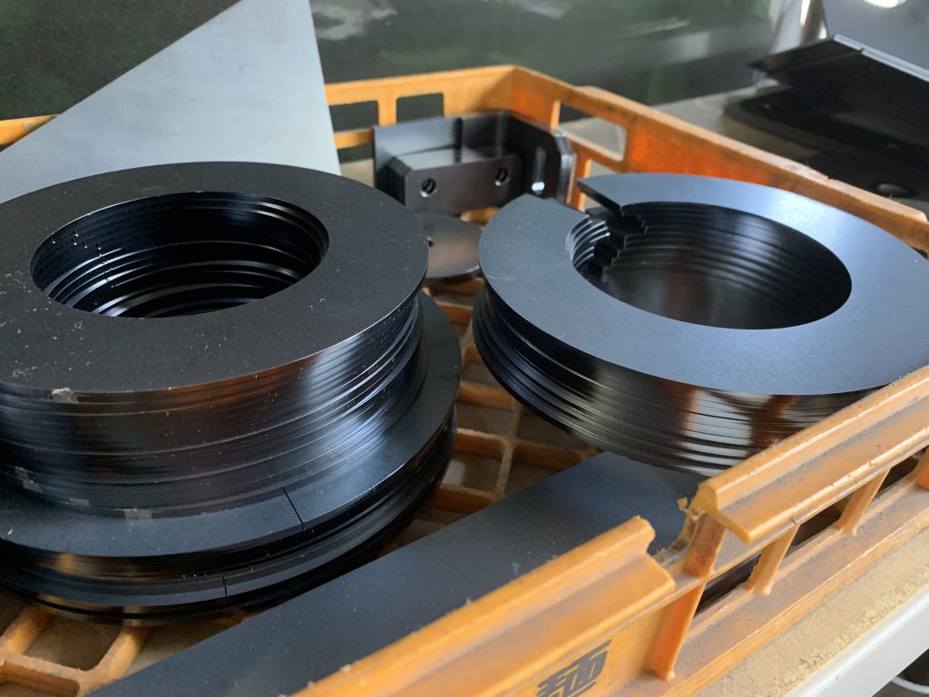 こちらはスクリューフィーダーのスクリューになるパーツです。このあと、工場内で曲げ加工を施してから軸に溶接していきます。