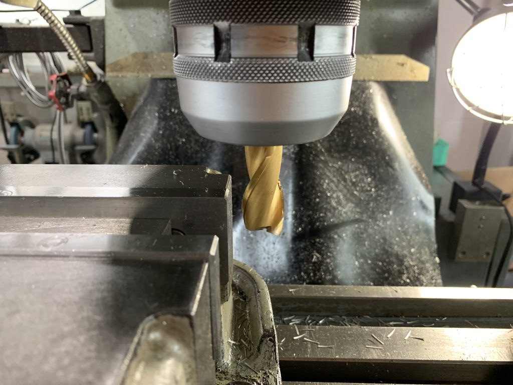 ▲超硬合金のエンドミルを回転させながら切削加工を行っていきます。